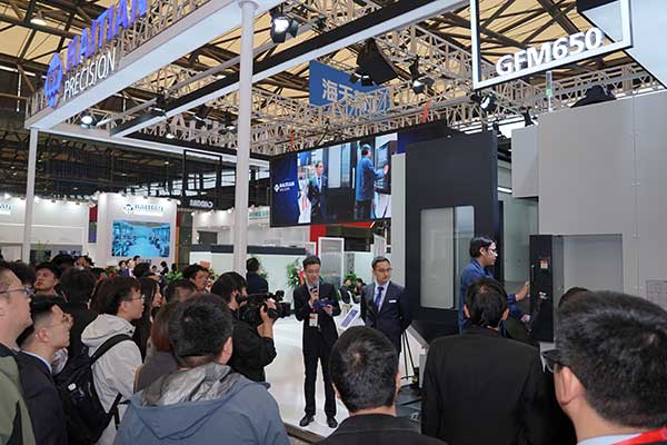 此次展會(huì),海天精工帶來六款高性能、高精度、高效率的機(jī)床產(chǎn)品,這些機(jī)型在結(jié)構(gòu)設(shè)計(jì)、控制系統(tǒng)、加工精度等方面均實(shí)現(xiàn)了突破。參觀者們紛紛駐足觀看,對(duì)海天精工的產(chǎn)品贊不絕口。特別是全新研發(fā)的GFM650龍門五軸高速銑削中心與兼?zhèn)渑P式和立式加工能力的HF80H 臥式五軸加工中心更成為全場(chǎng)焦點(diǎn),參觀咨詢者絡(luò)繹不絕。